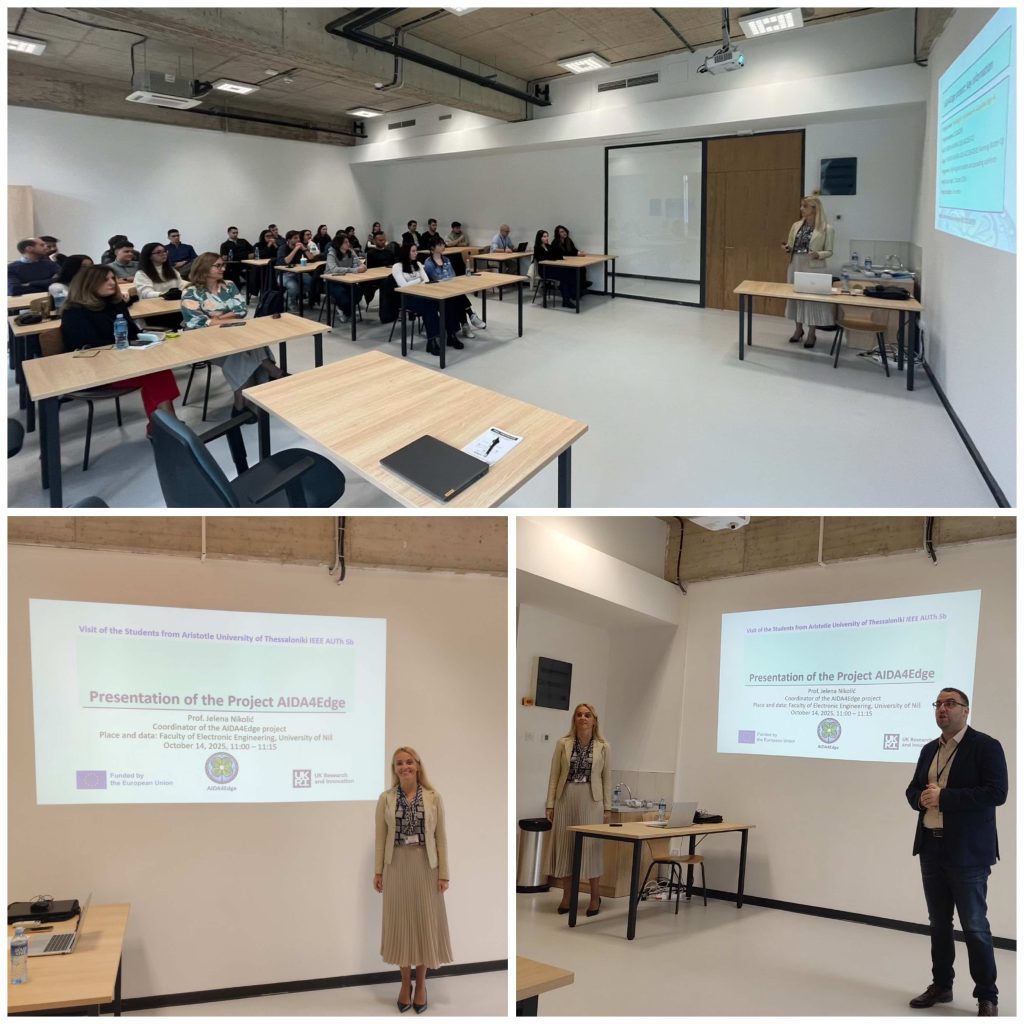 During the MIEL Conference held at the Faculty of Electronic Engineering, University of Niš, a dedicated session was organized to introduce the AIDA4Edge project to visiting students from the IEEE Student Branch of Aristotle University of Thessaloniki.